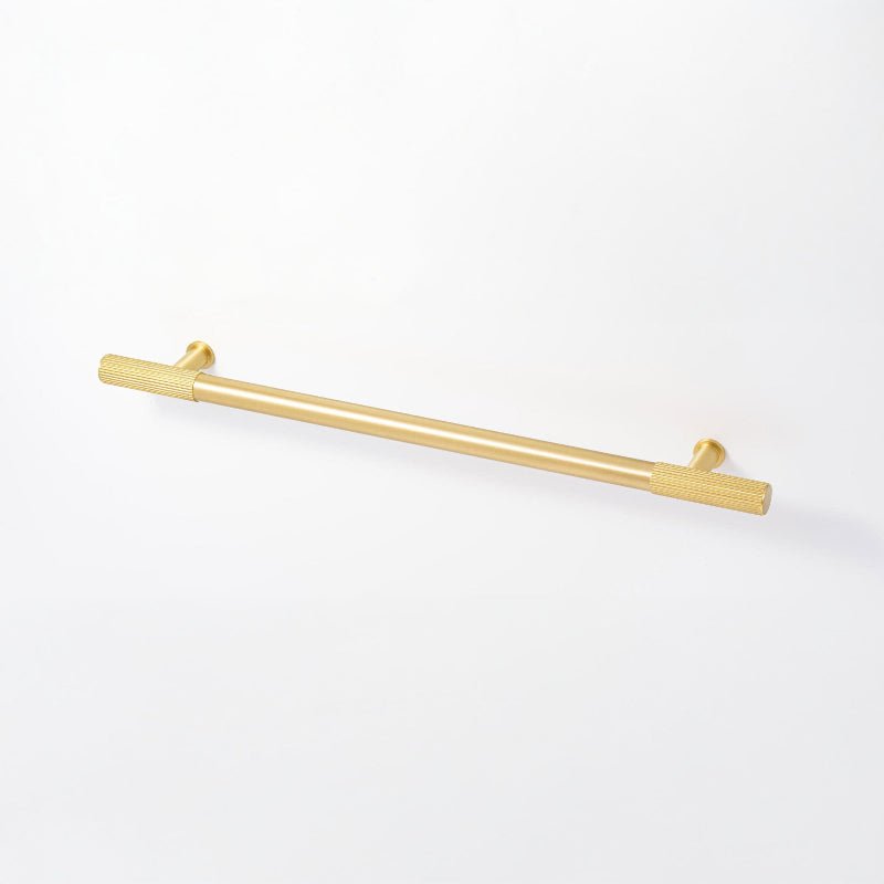 The Castella Romano Appliance Pull is crafted from solid brass with a distinctive linear knurled design inspired by the Roman Forum. Blending historic elegance with modern functionality, this handle makes a bold statement on doors, large cabinets, and contemporary kitchen designs.