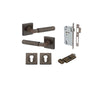👉 Lever handles, square rose backplates, spindle, fixings, and tie bolts.