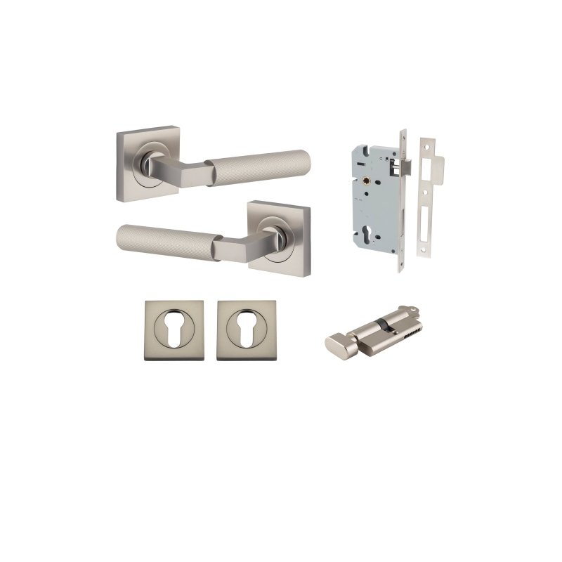 The Iver Brunswick Door Lever Handle On Square Rose brings bold textural detail and sleek geometry to any interior door. With its diamond-cut cross-knurl finish and square rose backplate, it offers dynamic style combined with robust performance — ideal for homes, offices, and commercial spaces that demand both form and function.
