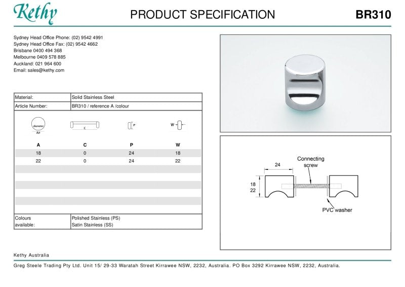 The KETHY BR310 Glass Door Back-to-Back Pair Cylinder Knob (22mm) is a sophisticated and stylish door hardware solution designed for glass doors. This back-to-back pair of cylinder knobs is crafted with precision and attention to detail, ensuring both functionality and aesthetic appeal.