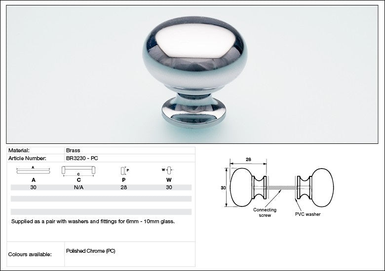 The KETHY BR32 Glass Door Back-to-Back Pair Brass Mushroom Knob (30mm) is a stylish and functional hardware accessory designed to enhance the aesthetic appeal of glass doors. Crafted with precision and attention to detail, these knobs are part of the BR32 series, known for their durability and sophisticated design.