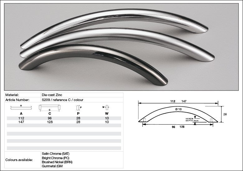 KETHY S209 CABINET S SERIES BOW HANDLE 96MM
