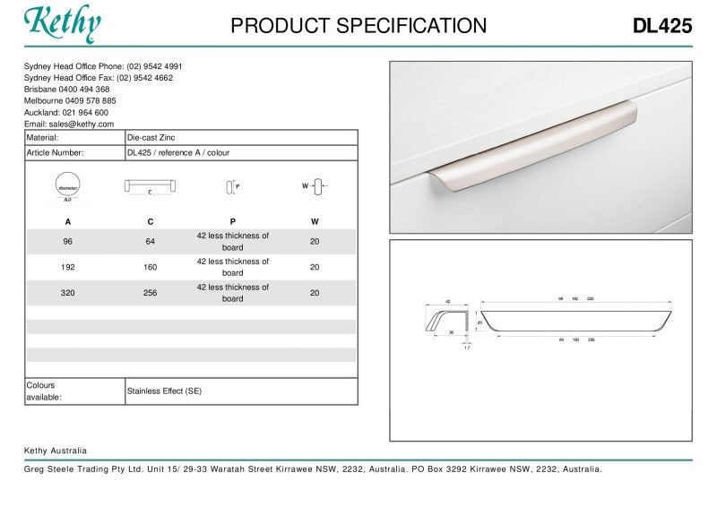 The KETHY DL425 Cabinet Borgo Curved Edge Pull is a stylish and functional cabinet hardware accessory designed to enhance the aesthetic appeal of your cabinets. Crafted with precision, this pull features a curved edge design that adds a touch of elegance to any cabinet or drawer it adorns.