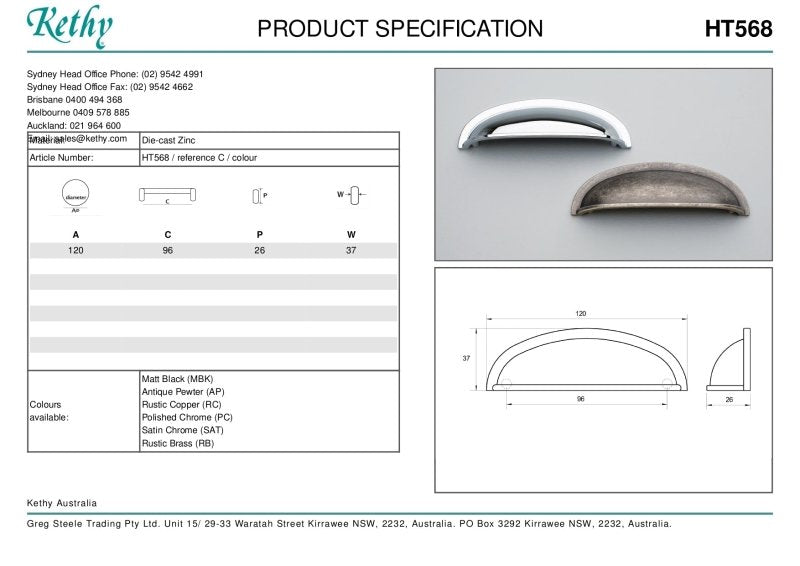 Key features of the KETHY HT568 Cabinet Bristol Cup Pull 96mm include: