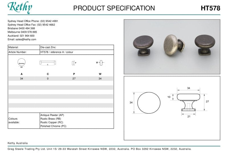 The KETHY HT578 Cabinet Sherlock Knob 34mm combines functionality with aesthetic appeal, making it an ideal choice for upgrading cabinets, drawers, or furniture pieces. With a diameter of 34mm, this knob offers a comfortable grip while adding a touch of elegance to any space.