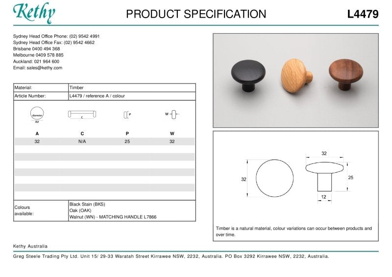 The KETHY L4479 Cabinet Brutus Knob, measuring 32mm in diameter, is a stylish and functional hardware accessory designed to elevate the aesthetic appeal of cabinets, drawers, and furniture pieces. Crafted with meticulous attention to detail, this knob features a sleek and contemporary design that seamlessly complements modern, transitional, or classic interior decor styles.