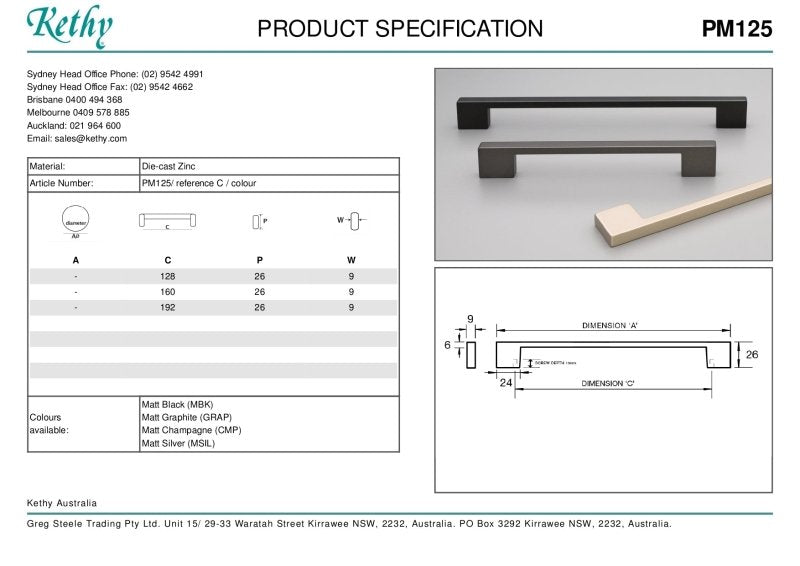KETHY PM125 CABINET BINDA HANDLE 160MM