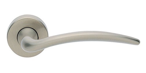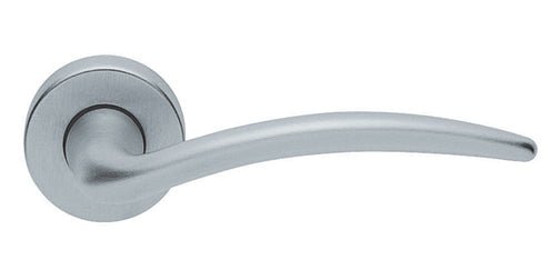 Product Description: Manital's "Fancy lever & round rose door handle set" comes with a wave-shaped lever and a round rose. This door handle set is designed and manufactured in Italy by well known Manital brand. The Francy lever round rose door handle has an attractive, flawless finish so feels enjoyable during closing and opening the door. It is perfect for residential and corporate doors since it features 2 through-fixing holes that are 16–20 mm in diameter.