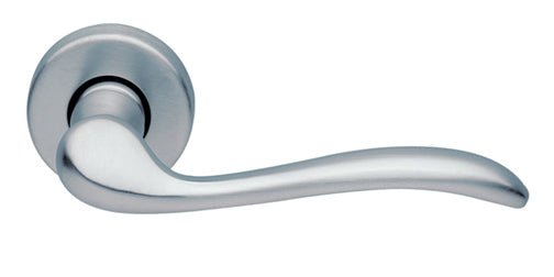 Product Description: Manital- Tosca lever with round rose door handle has a unique design door handle lever and round type rose. The lever on this door handle measures 130mm in length and has a 50mm rose. Therefore, a fire-rated door with a 16–20mm hole and two through mounting holes is ideal for the Tosca lever round rose door handle. Additionally, it has a glossy shine that endures even after extended use.