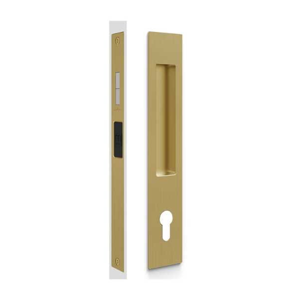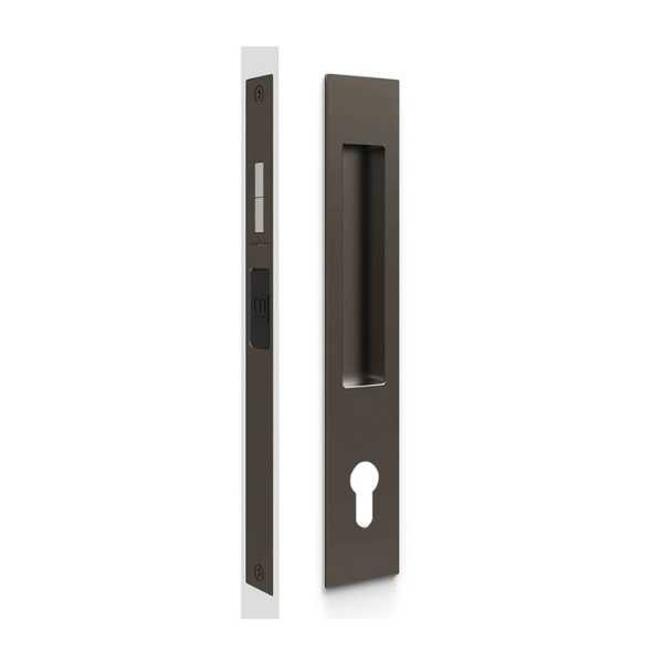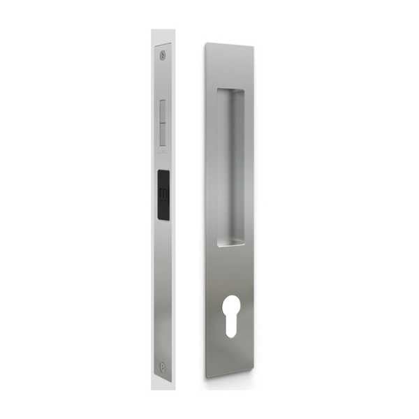 Flush Pull Function - Intended for use on sliding doors due to the need for these doors to slide in front of each other or back into a slot, thus eliminating the need for a handle that protrudes from the surface of the doors.