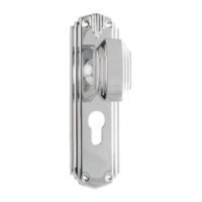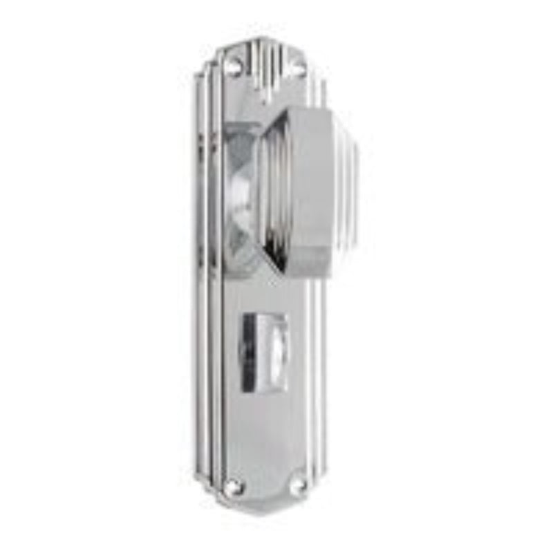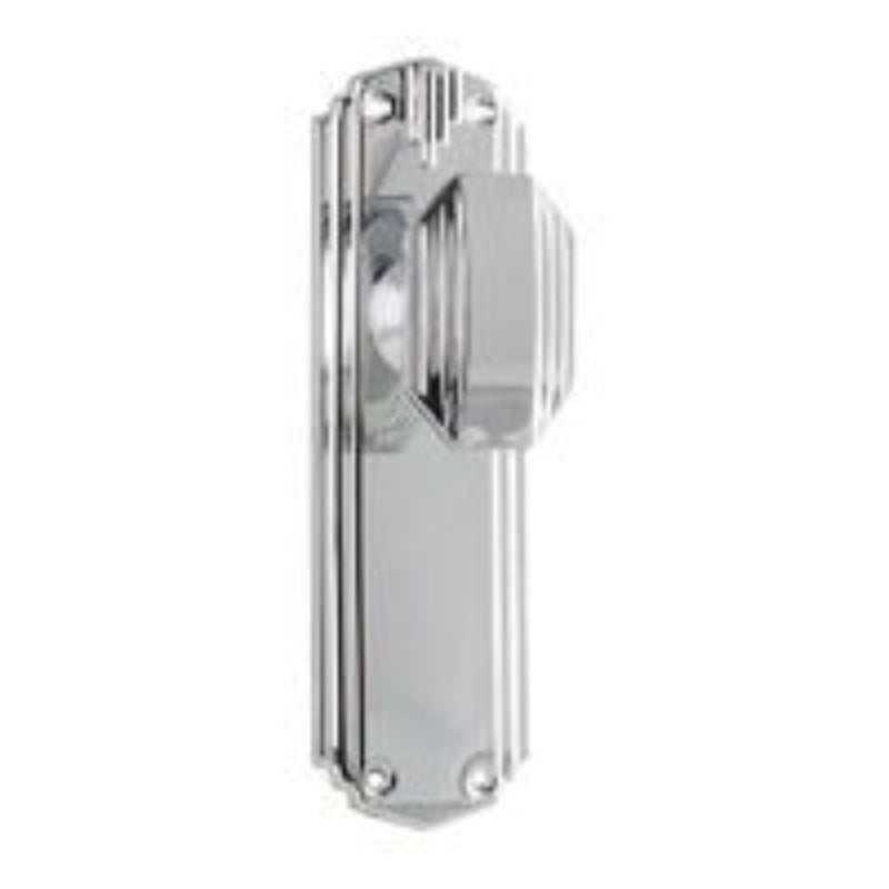 The Tradco Napier Art Deco Door Knob on Backplate combines striking geometric Art Deco styling with durable solid brass construction. Perfect for homeowners, interior designers, and renovators, it offers customisable finishes and backplate options, making it a stylish and functional choice for any door.