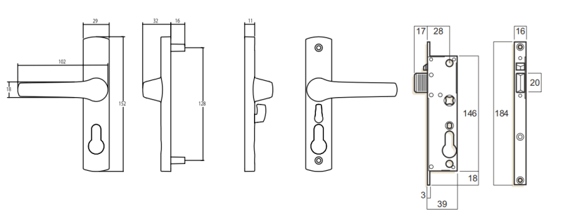 Whitco single or multi point hinged security or screen door lock less cylinder.