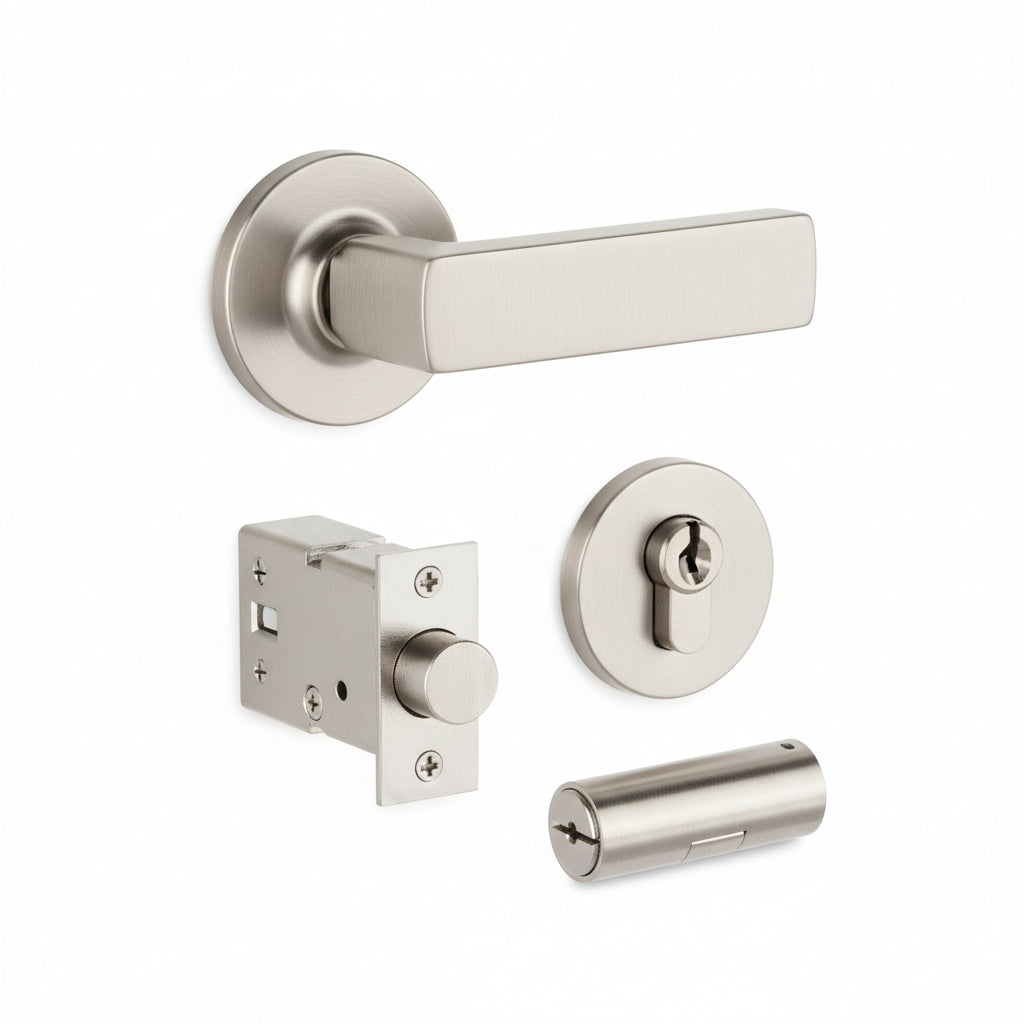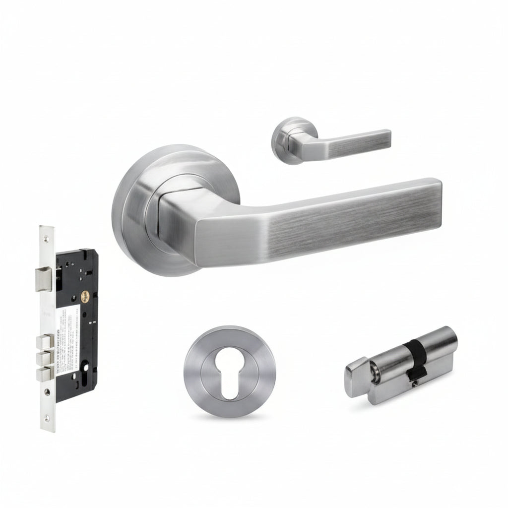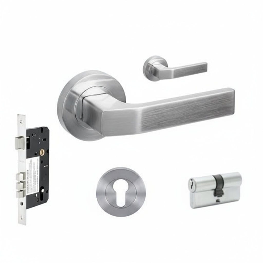 👉 It is a modern lever handle suitable for passage, privacy, and entrance doors, providing smooth operation and contemporary design.