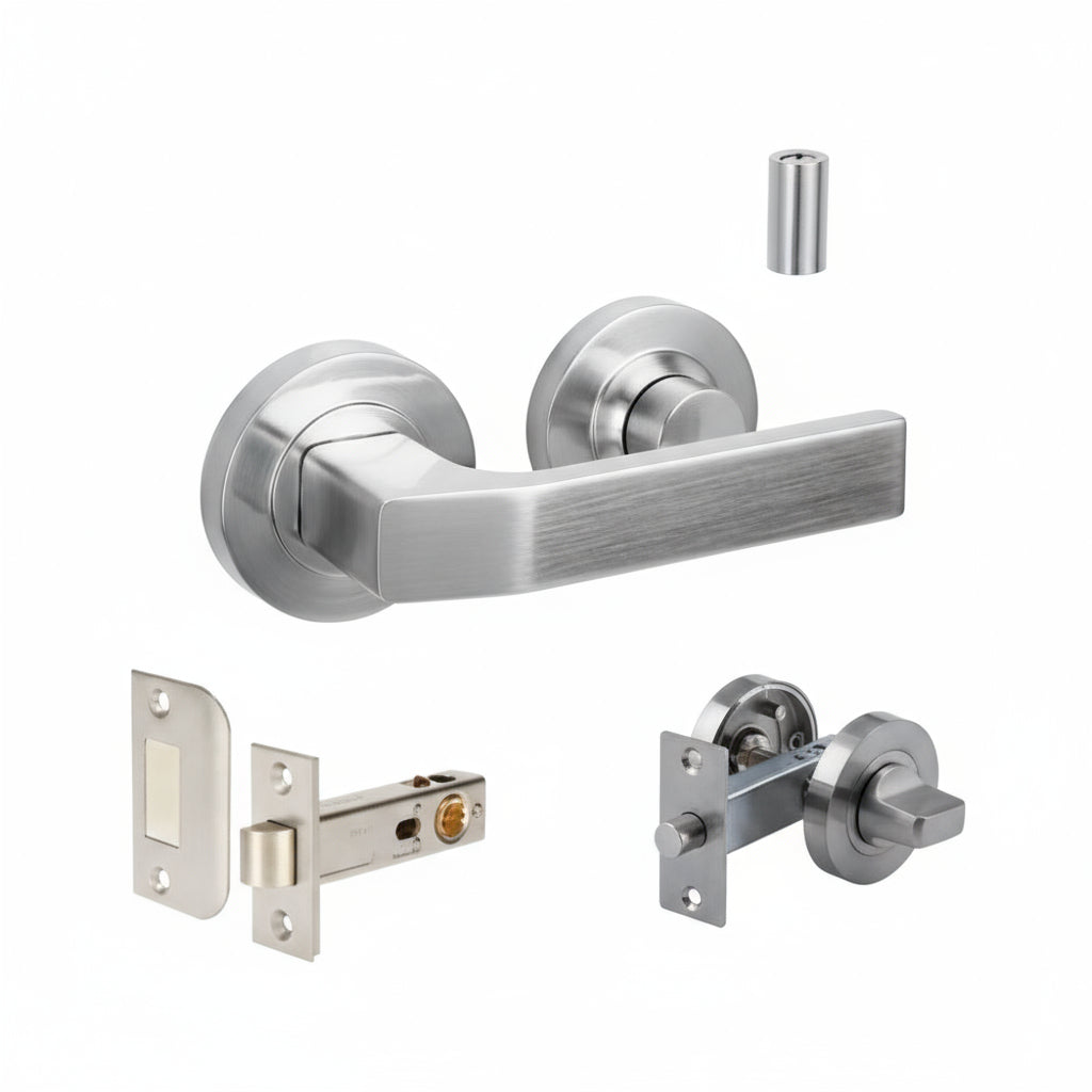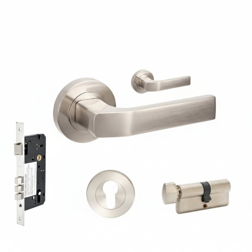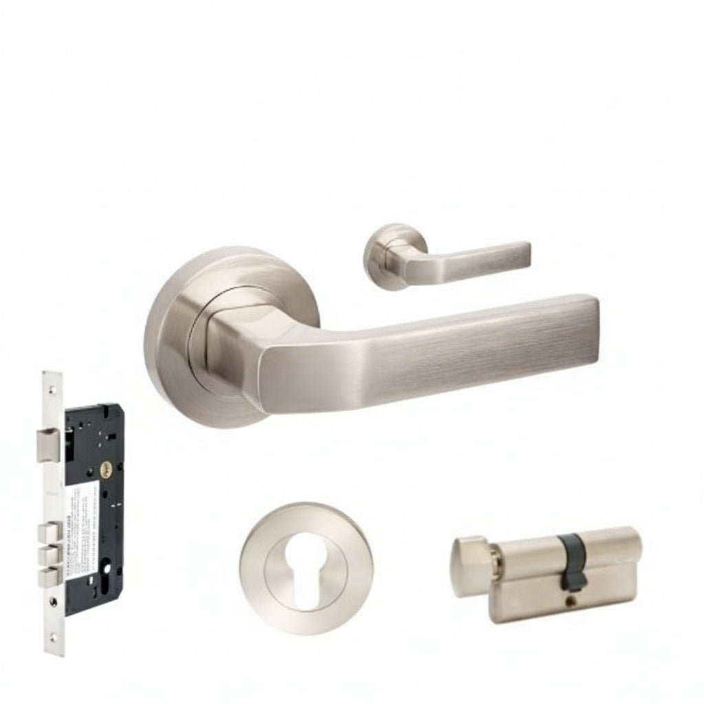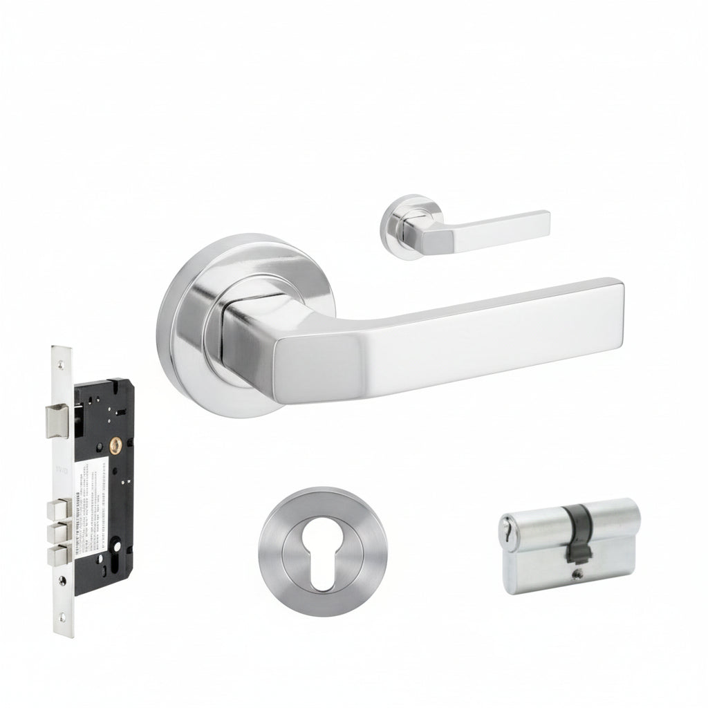 👉 It is a modern lever handle suitable for passage, privacy, and entrance doors, providing smooth operation and contemporary design.